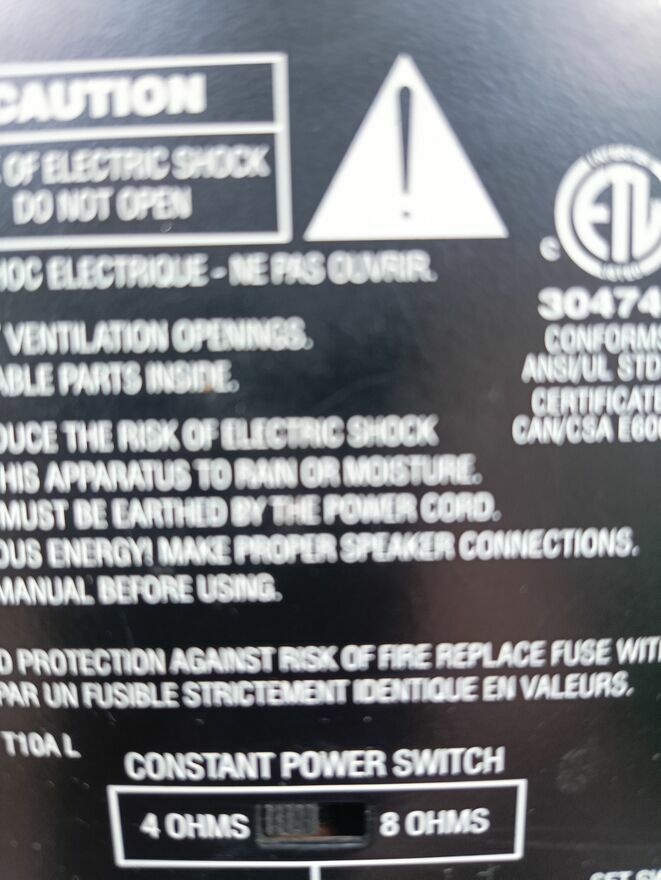 2x500w przy 4 ohm i 2x500 przy 8 ohm ( przełącznik widoczny na zdjęciu)